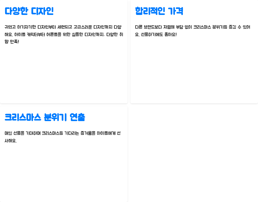 크리스마스 분위기와 함께 실용적인 선물까지, 일석이조의 효과를 누릴 수 있습니다. 특히, 아이들에게는 매일매일 선물을 기대하며 크리스마스를 손꼽아 기다리는 즐거움을 선사할 수 있을 거예요.