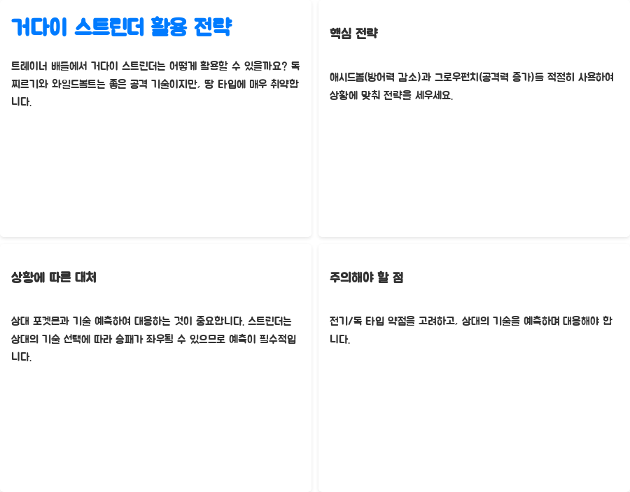 거다이 스트린더 트레이너 배틀 활용 전략 꿀팁!