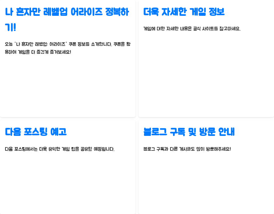 오늘 알아본 '나 혼자만 레벨업: 어라이즈' 쿠폰 정보가 도움이 되셨기를 바랍니다.