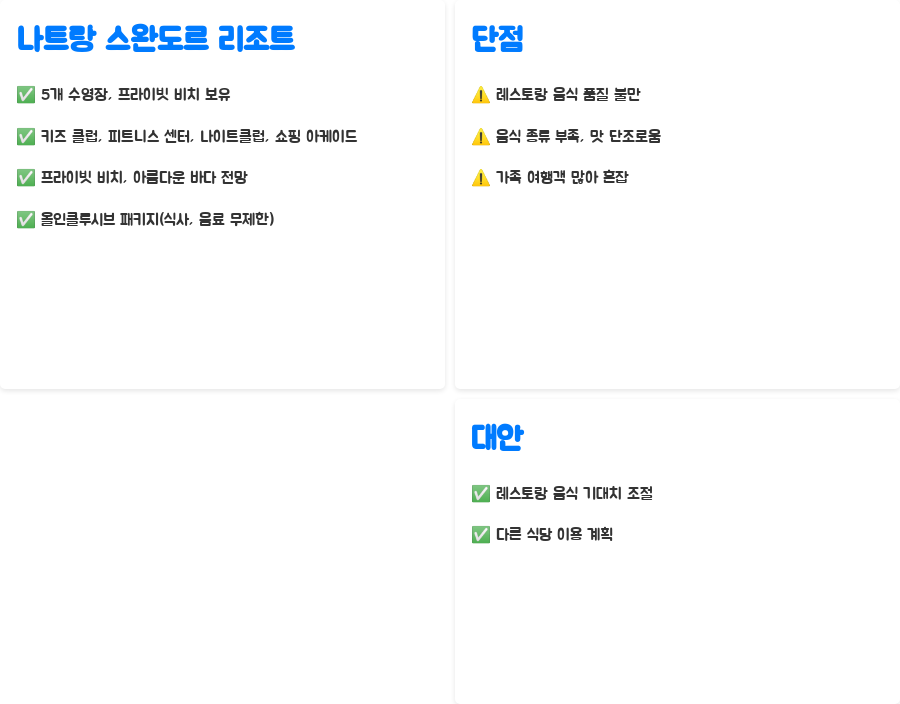 핵심 정리: 나트랑 스완도르 리조트의 장점과 단점