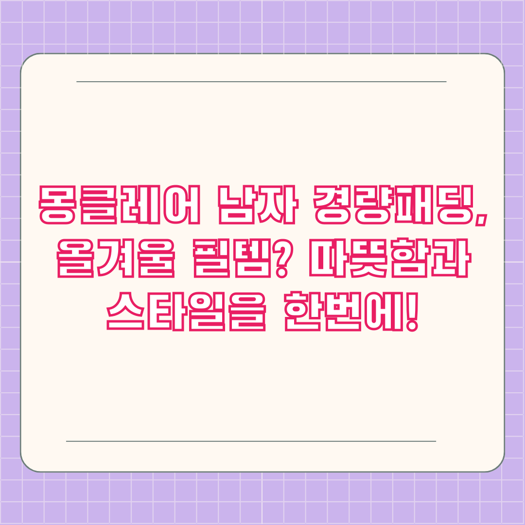 몽클레어 남자 경량패딩, 따뜻한 겨울을 위한 선택!