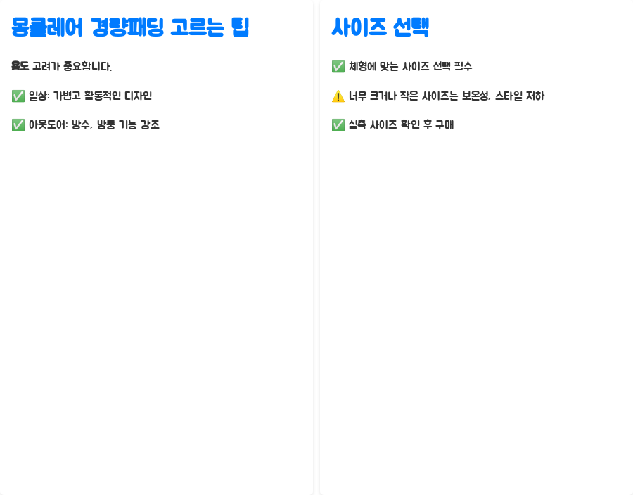 나에게 맞는 몽클레어 경량패딩 고르는 팁