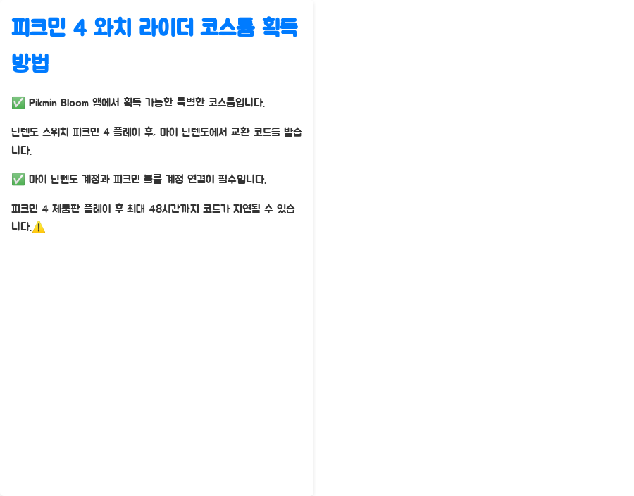 피크민 4 와치 라이더 코스튬 획득 방법