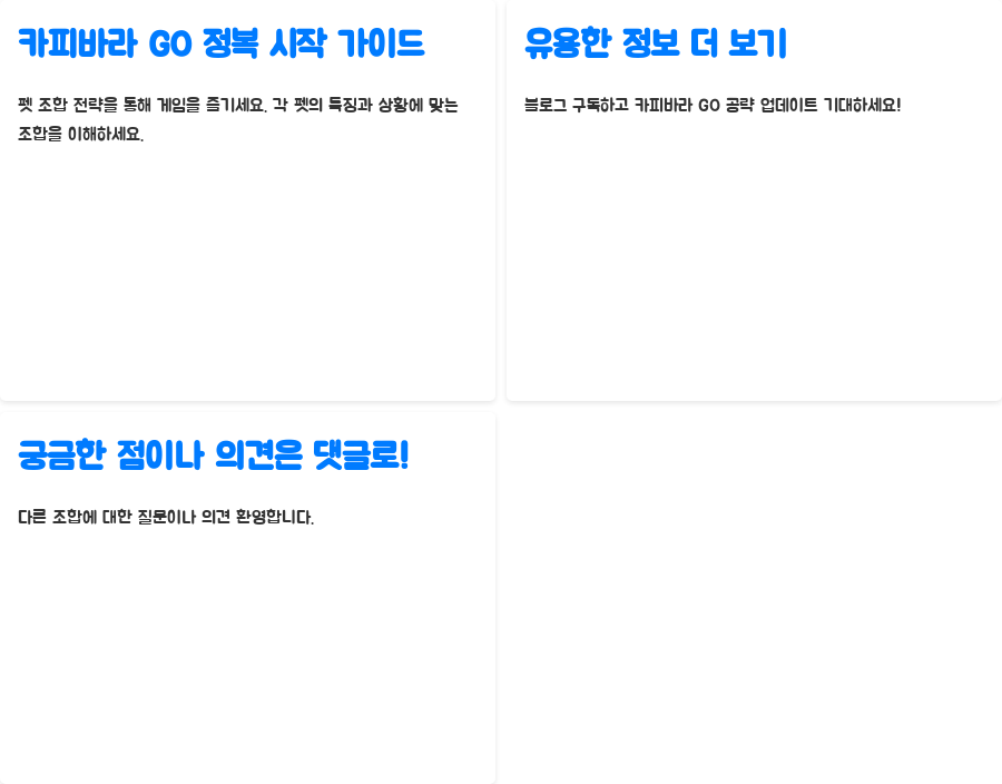다른 유용한 정보들을 얻고 싶다면, 저희 블로그를 구독하시고 앞으로 업로드 될 다양한 카피바라 GO 공략들을 기대해주세요!