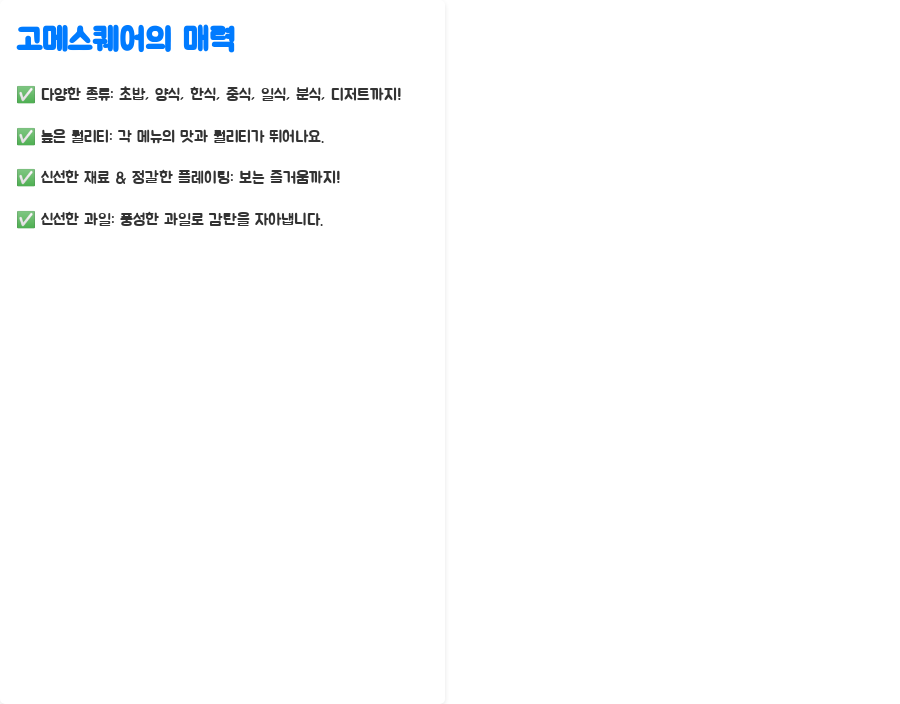 과연 고메스퀘어는 어떤 매력으로 사람들을 사로잡고 있을까요?