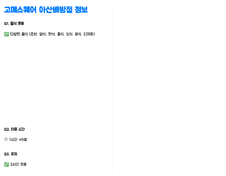 Q2. 고메스퀘어 아산배방점의 이용 시간은 얼마나 되나요?