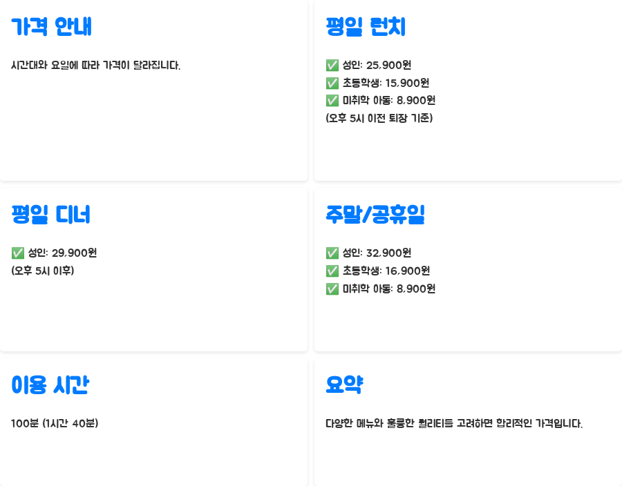 | 평일 런치 성인 | 25,900원 |