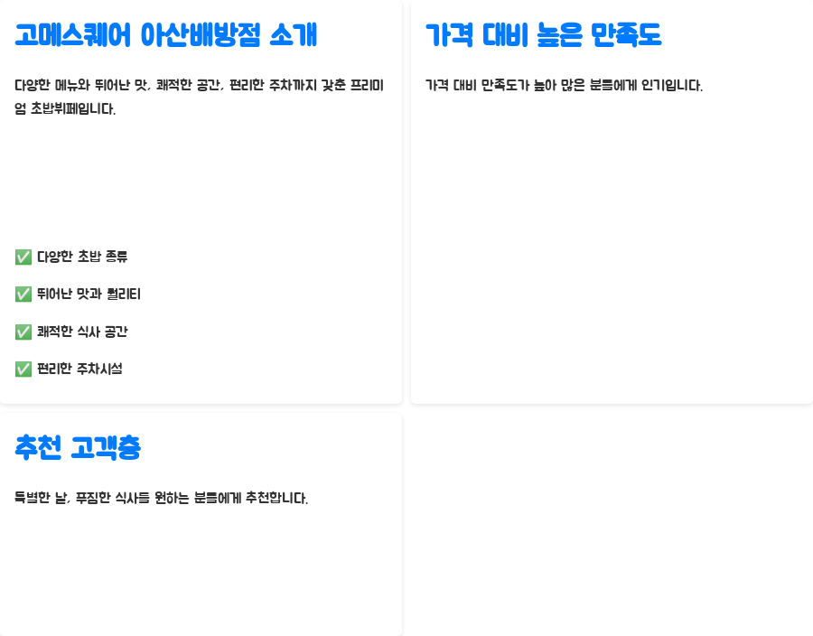 오늘 고메스퀘어 아산배방점에 대해 자세히 알아보았는데요.