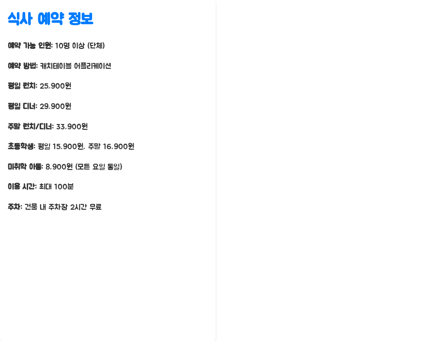 | 예약 가능 인원 | 10명 이상 (단체) |
